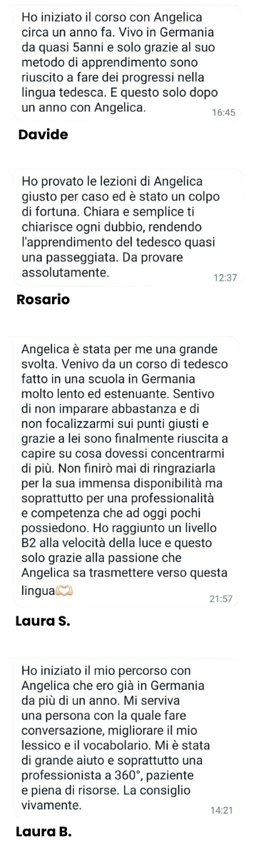 Sono felice di annunciare che le iscrizioni per il miei Corsi di Tedesco per Principianti A1.1, A1.2 e Pronuncia riapriranno presto, ed ecco la novità entusiasmante: uno SCONTO SPECIALE riservato esclusivamente a chi si unisce alla lista d'attesa!